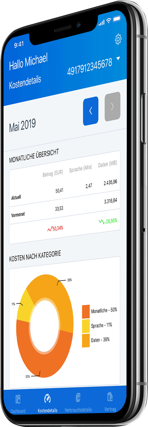 Contract manage­ment (inventory, ordering, logistics, histor­ici­za­tion), Invoice process­ing (check, assign, update), Re­porting (exten­sive analysis of con­sump­tion, costs and origin at all organi­za­tional levels of a large company), Inte­gration into existing system environ­ments (ERP systems, SRM systems, HR systems, SAP ARIBA, Crossinx, basware, Service­Now ...), Connection of any network operator and supplier.